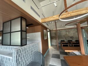 - 客席エリア:リングペンダント照明・ダウンライト・スポットライト設置