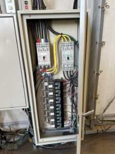 新規分電盤は自立型のキャビネットを採用しました。配線は色分け・整理を徹底し、今後のメンテナンスがしやすい状態に仕上げています。